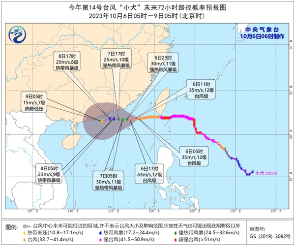 今晨05时,“小犬”的中心位于广东省汕尾市东偏南大约300公里的南海东北部海面上,预计它将以每小时10公里左右的速度向偏西方向移动,逐渐向广东东部沿海靠近,8日在广东东部近海海面转向西偏南方向移动,强度逐渐减弱。中央气象台今晨继续发布台风黄色预警。