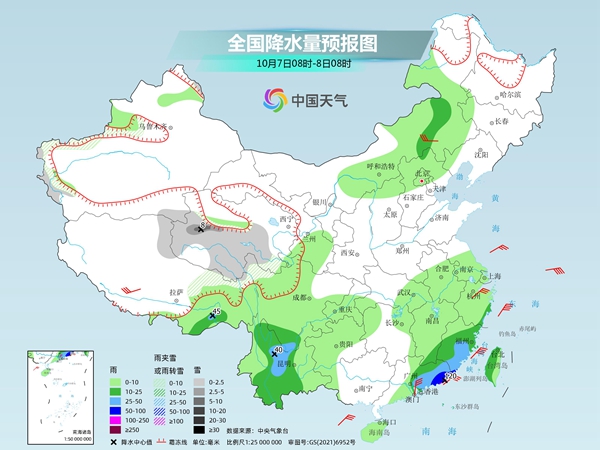 受其影响,今天起广东、福建沿海雨势明显增强,台湾降雨有所减弱。除了台风雨,未来三天,我国西部仍将出现较大范围雨雪天气。