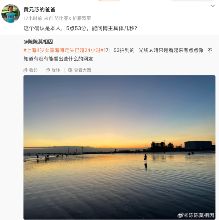 有网友提供了当天17:53拍到的疑似小女孩身影的照片,被女孩家长确认是女儿本人。