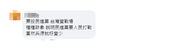 不过,也有岛内网民认为,“票投民进党,台湾变战场,种种迹象说明民进党要人民打战,当然兵源就变少。”↓