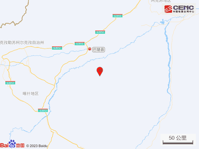 速报参数: 据中国地震台网正式测定,10月8日12时33分在新疆喀什地区巴楚县发生3.0级地震,震源深度26公里,震中位于北纬39.22度,东经78.85度。
