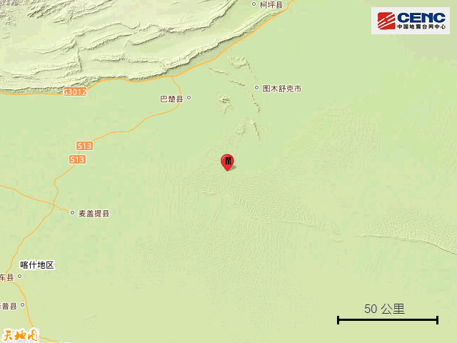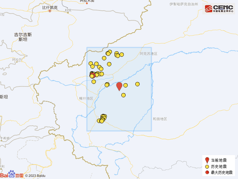 历史地震: 根据中国地震台网速报目录,震中周边200公里内近5年来发生3级以上地震共231次,最大地震是2020年1月19日在新疆喀什地区伽师县发生的6.4级地震(距离本次震中156公里),按震级大小前50次历史地震分布如图。