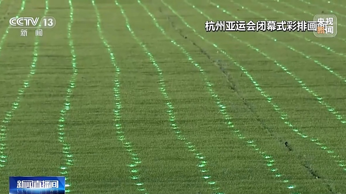 杭州亚运会闭幕式视觉导演 张世骞:我们在草坪里面藏了4万多个LED灯珠,进场的时候你不会感觉到它们的存在,但是随着音乐,随着节目,随着情绪表达,视觉呈现,它们会亮起来,然后让观众感觉到从一个正常的比赛的场景幻化出来我们想要的浪潮、荷花和桂花这些图案。