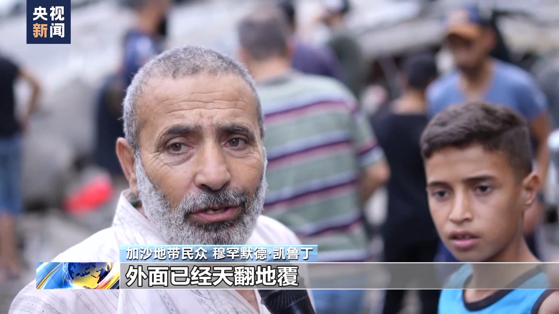 加沙地带民众 穆罕默德·凯鲁丁:我们坐在家里,邻居警告我们让我们撤离,但我们不知道该去哪里,只能听天由命。我们跑出家门,外面已经天翻地覆,我们朝着不同的方向跑,然后他们(以军)炸毁了整个房子,房子从上到下全塌了,原本5层的楼房现在就剩1个房顶。