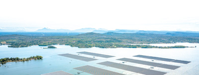 在泰国乌汶府诗琳通水库拍摄的浮体光伏项目。这是中泰两国联合修建、泰国目前最大的浮体光伏项目。