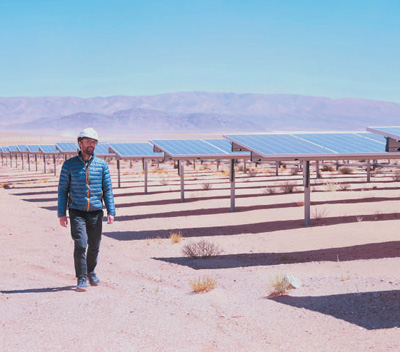 在阿根廷高查瑞光伏电站项目现场,工作人员正在进行日常巡视。