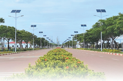 老挝万象赛色塔综合开发区大力推动绿色低碳园区建设。图为开发区内安装的太阳能路灯。