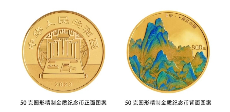 中国人民银行定于2023年10月16日,发行中国古代名画系列(千里江山图)金银纪念币。该套金银纪念币共5枚,其中金质纪念币1枚,银质纪念币4枚,均为中华人民共和国法定货币。