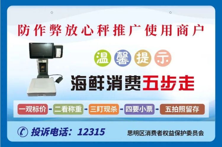 ②复秤后宰杀。对购买水产品等商品重量有疑问,建议用“公平秤”复秤后再宰杀。
