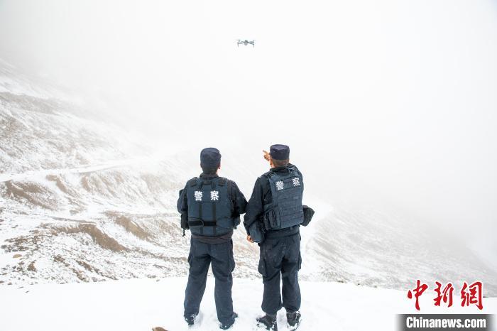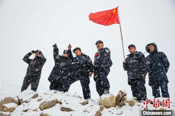 近日,新疆帕米尔高原边境一线普降大雪,10月9日,新疆喀什边境管理支队科克牙尔边境派出所联合驻地乡政府,组建由民警、乡干部、护边员组成的巡逻分队,前往海拔4700米的边境一线开展巡逻踏查工作。队员们采取徒步加无人机的方式对山口、要道和无人区进行巡逻踏查,检修边防设施,排除隐患,切实掌握边境一线实时动态,确保边境辖区持续安全稳定。