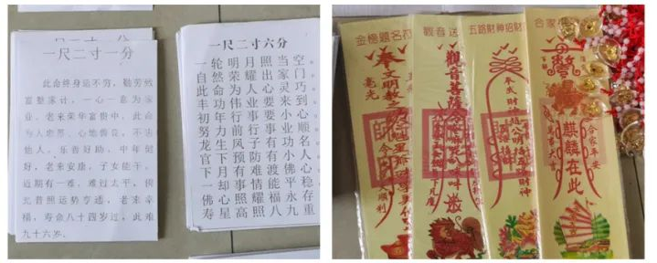 纸签上写着诸如“指长一尺二寸一,家中有事难太平”等迷信话语,中签后在场的其他团伙成员就会纷纷起哄,称当事人有难需要化解,鼓动当事人请“算命大师”化解凶难。