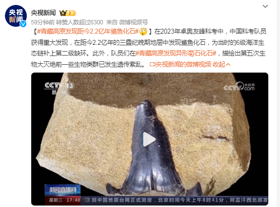 在2023年卓奥友峰科考中,中国科考队员获得重大发现,在距今2.2亿年的三叠纪晚期地层中发现鲨鱼化石,为当时的6级海洋生态链补上第二级缺环。此外,队员们在#青藏高原发现异形菊石化石#,描绘出第五次生物大灭绝前一些生物类群已发生遗传紊乱。