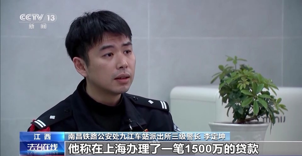南昌铁路公安处九江车站派出所三级警长 李定坤:他称在上海办理了一笔1500万的贷款,贷款中间人大概前前后后收取了将近60余万的中介费。