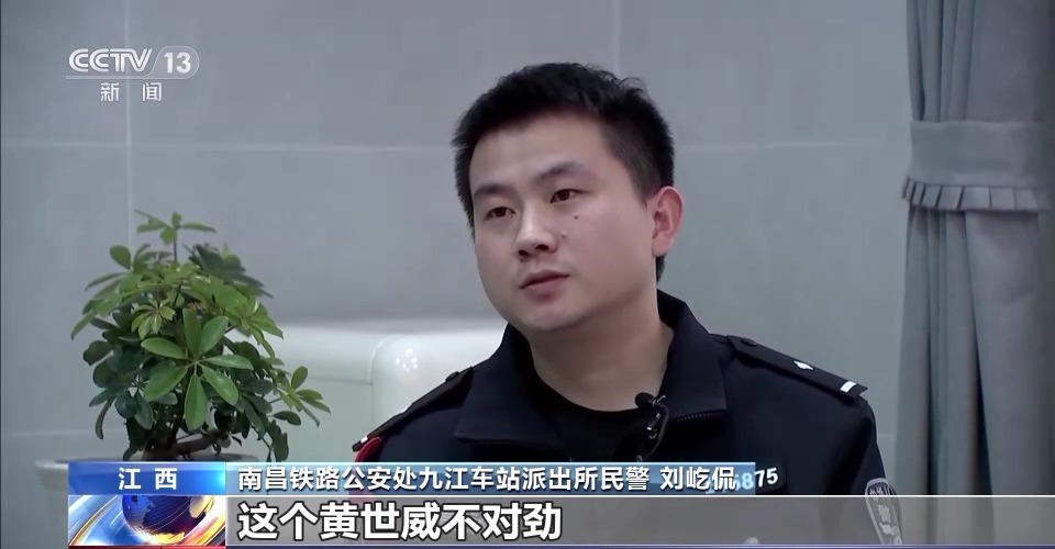 南昌铁路公安处九江车站派出所民警 刘屹侃:我们就发现这不对劲,黄世威不对劲,可以认定这个黄世威涉嫌诈骗了。