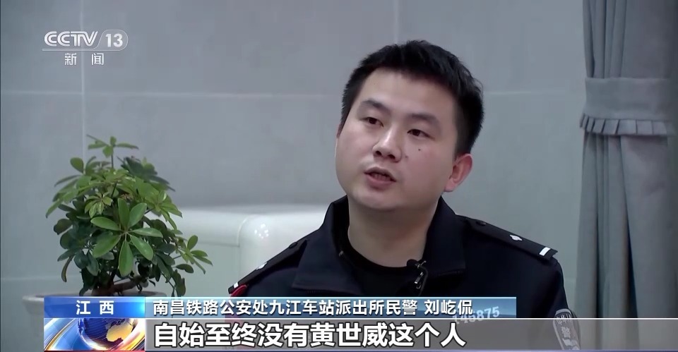 南昌铁路公安处九江车站派出所三级警长 李定坤:比对不上黄世威的信息,因为除了一个微信号,所有的信息都没有。