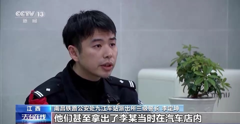 南昌铁路公安处九江车站派出所三级警长 李定坤:他们甚至拿出来李某当时在汽车店内购买汽车时的录像视频。