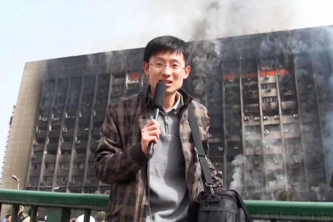 当时报社里鼓励做新媒体,我算是第一波配了摄影机的人。在解放广场的大楼前,我做了第一次的出镜拍摄。
