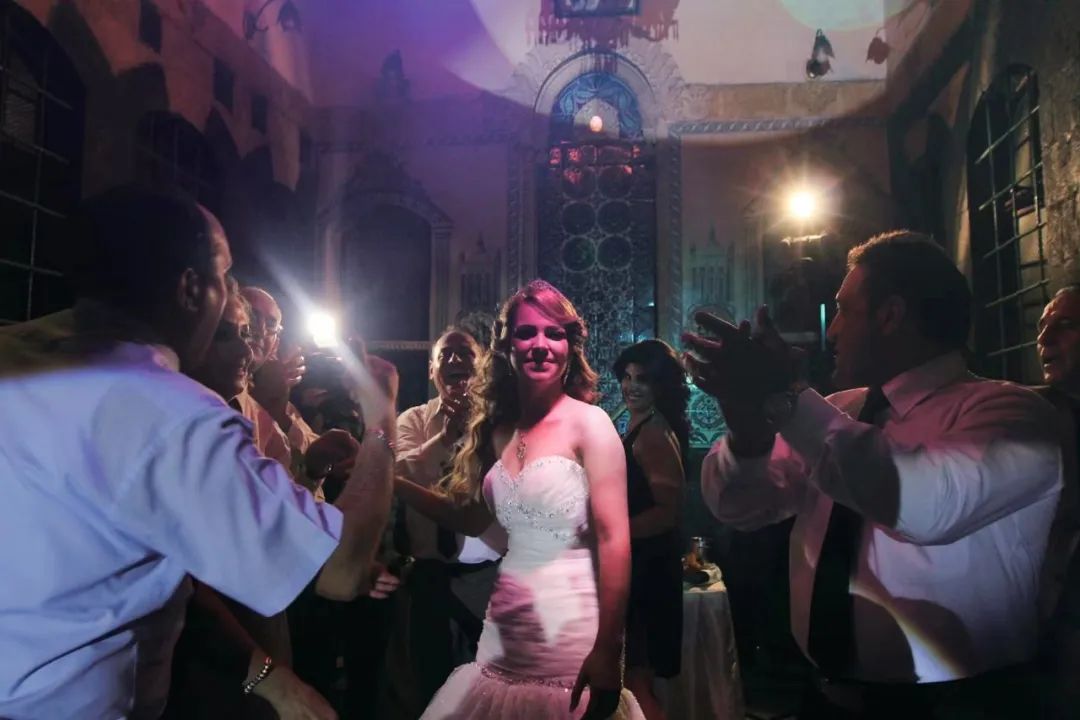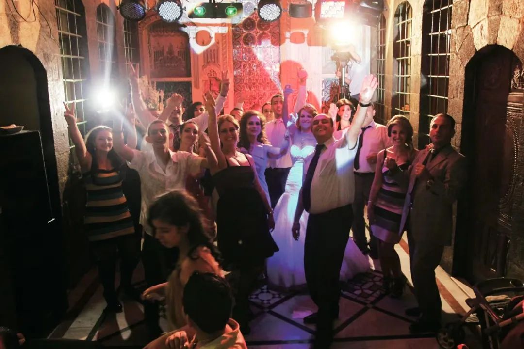 婚礼上播的是赞美祖国的歌曲,在祝福新婚夫妇的同时,他们也祈福叙利亚能在战争中挺过来。