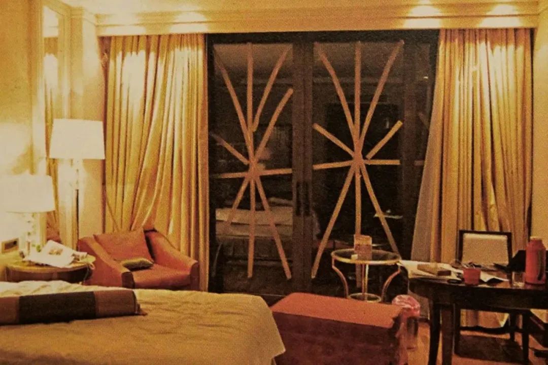 我回到房间,把房间的窗户贴成像蜘蛛网一样,以防玻璃碎裂的飞溅伤害。为了更加安全,我还放弃了床,睡在床和墙夹缝的地毯上,以床做屏障。