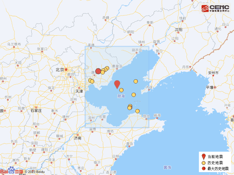 历史地震: 根据中国地震台网速报目录,震中周边200公里内近5年来发生3级以上地震共17次,最大地震是2020年7月12日在河北唐山市古冶区发生的5.1级地震(距离本次震中129公里),历史地震分布如图。