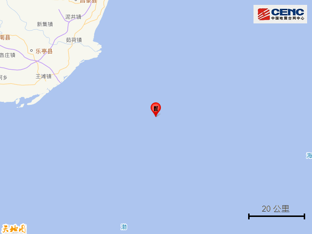 速报参数: 据中国地震台网正式测定,10月13日8时37分在河北唐山市乐亭县海域发生2.3级地震,震源深度8公里,震中位于北纬39.05度,东经119.61度,距海岸线最近约47公里。