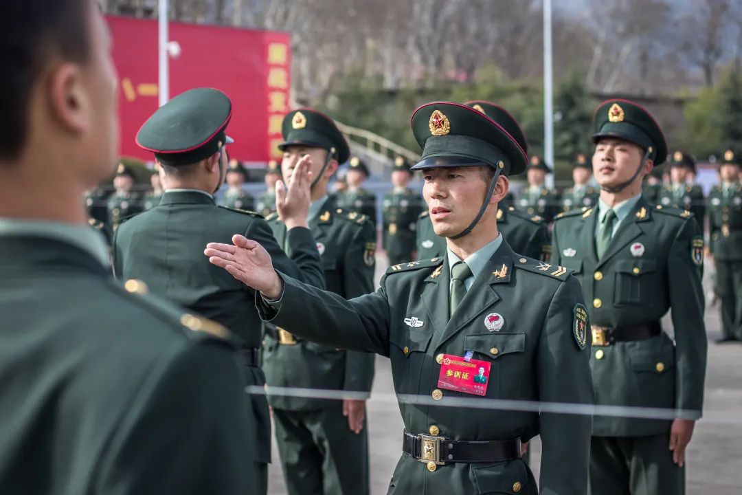 2019年3月,高思亮在阅兵集训中指导队员队列动作(杨海鹏 摄)