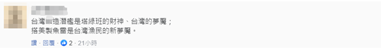 有网民讽刺称,台湾“自造”潜艇是塔绿班(民进党)的财神、台湾的梦魇;搭载美制鱼雷是台湾渔民的新梦魇。↓