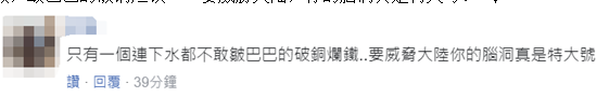 相关报道引发岛内网民关注,有网民在台媒评论区留言称,“只有一个连下水都不敢,皱巴巴的破铜烂铁……要威胁大陆,你的脑洞真是特大号。”↓
