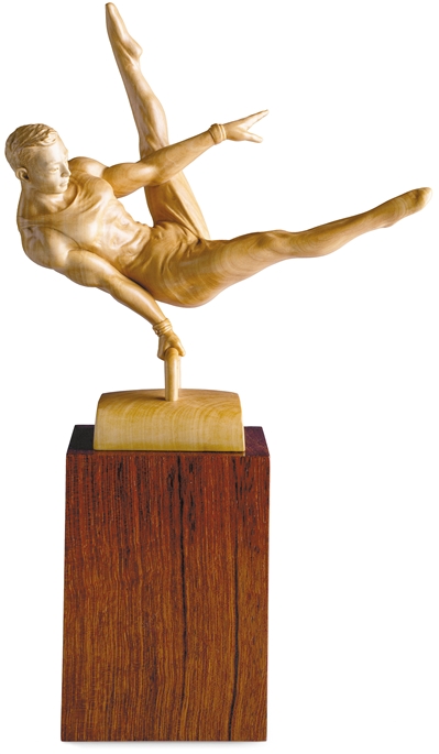 现代体育运动与工艺美术结合,又会碰撞出怎样的火花?在浙江展览馆,“‘艺起迎亚运’浙江省民间工艺主题创作精品展”汇聚浙江省56位民间艺人精心创作的100余件民间工艺美术作品。在继承体育题材工艺美术创作传统的同时,很多创作者在追求运动之美与材质之美、工艺之美、装饰之美共融中开辟审美新境。像吴尧辉和虞金顺的黄杨木雕,以立体化的凝练造型凸显运动张力,素雅木质与运动力量形成刚柔相济之美;林爱国的铁艺《自行车赛》,将体育健儿骑行场景融入装饰性创作,使作品充满抽象美。还有体育题材编织、面塑、刺绣、花灯等作品,也各彰其巧,展现了民间工艺美术的现代探索和创新面貌。
