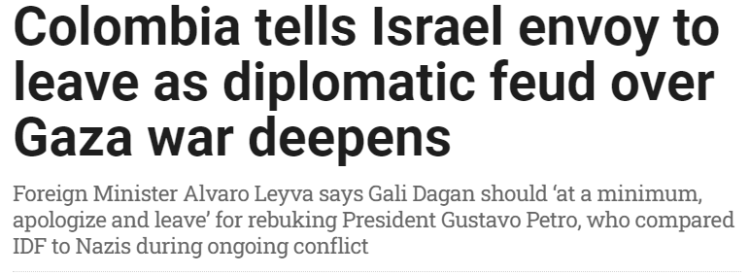 《以色列时报》等媒体迅速刊发了“哥伦比亚让以色列大使离开”的报道。
