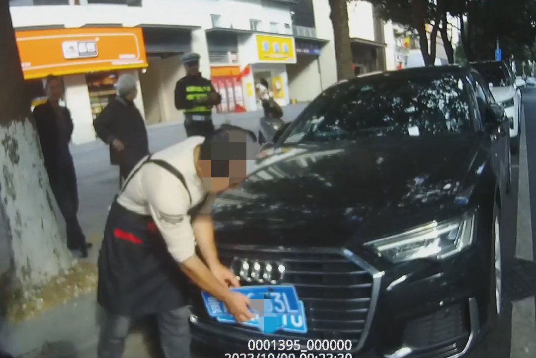 车主刘某交代,自己在附近开了个餐饮店,平时为了方便就把车停在路边车位。前段时间捡到一块车牌,灵机一动就想到了挂在自己的车上,每天能省不少停车费。