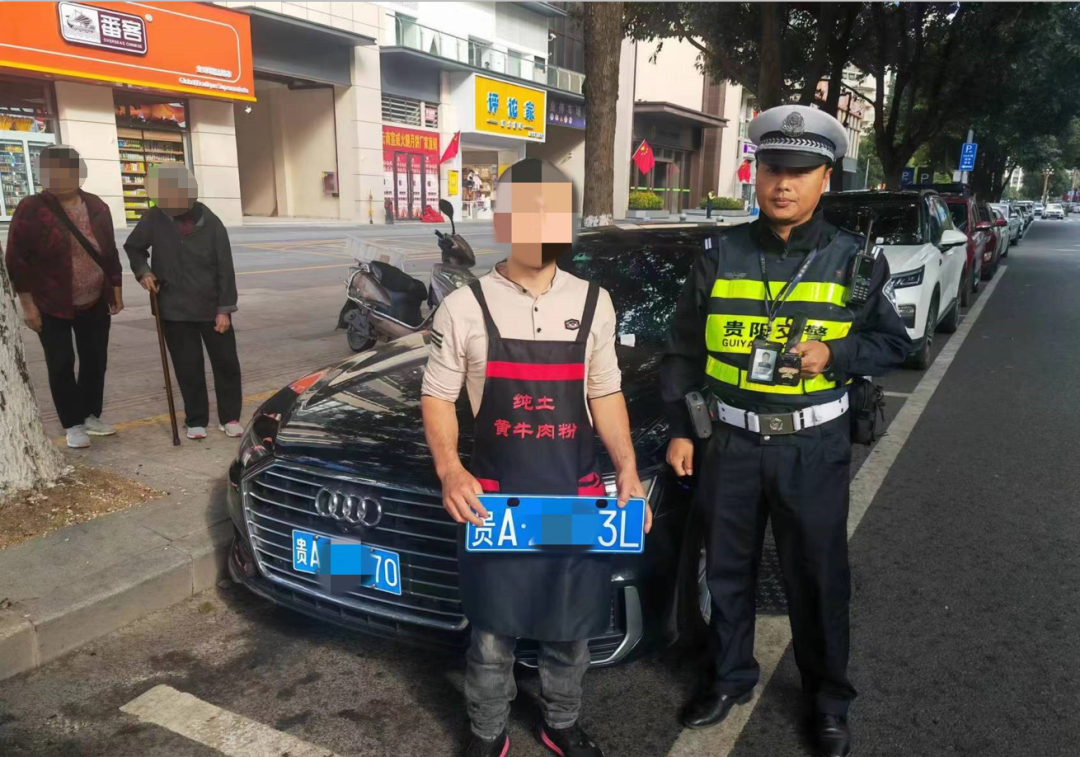 2023年10月9日,贵阳市观山湖区交警大队接到群众报警称,碧海南路停放了一辆“特别”的车,前后号牌不一样。接警后,民警立即前往现场,很快找到了该车辆,并通知了驾驶员前来现场处理。