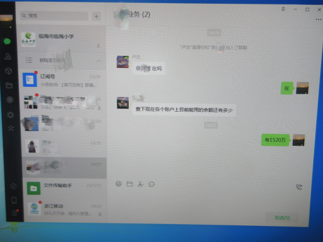 “账上还有多少钱?”10月11日14时,临海市东塍辖区某公司财务刘先生被老板拉进一个群,收到老板@他的这条信息。