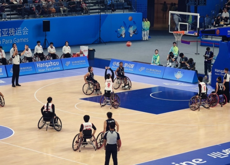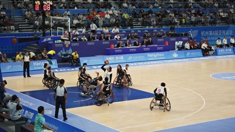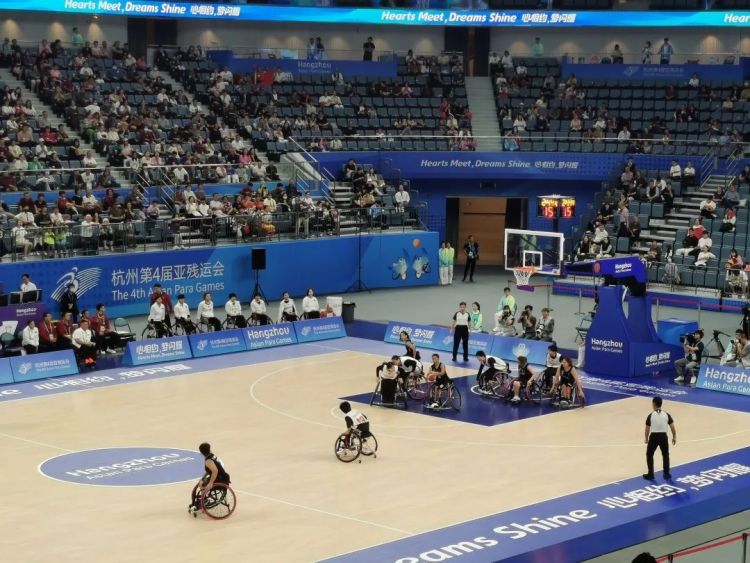 10月19日,杭州亚残运会轮椅篮球项目小组赛,率先在杭州奥体中心体育馆开打。