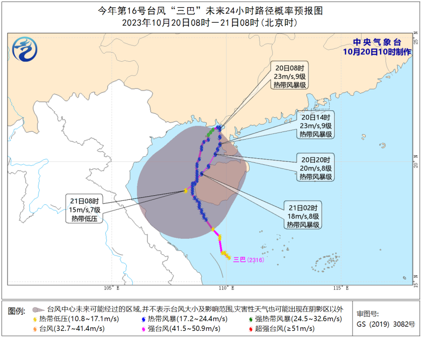 继19日9时前后,台风“三巴”登陆我国海南省东方市沿海后,今天9时45分,“三巴”再次登陆 广东省湛江市遂溪县沿海, 登陆时中心附近最大风力8级。中央气象台20日10时继续发布台风蓝色预警 ,预计“三巴”将以10公里的时速向偏南方向移动,趋向海南岛北部海面,强度逐渐减弱。