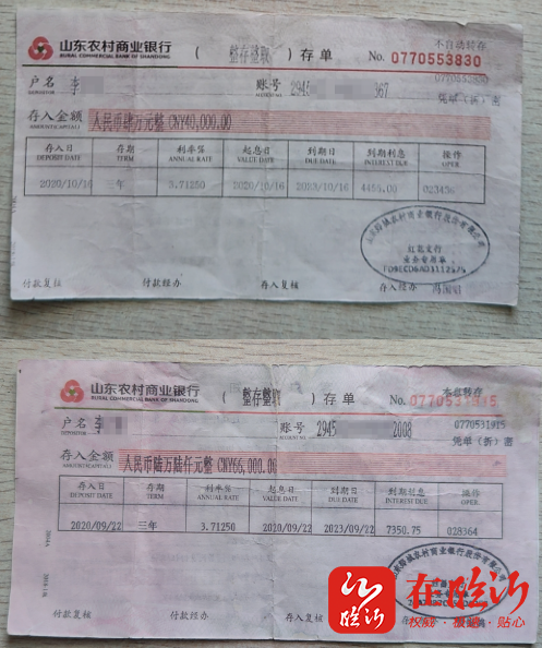 李某告诉民警,这2笔钱都是3年定期存款,因3年期满,她去取钱时却被丈夫提醒存单是假的。“钱是我存的,存单是一直放在床铺下面的,怎么可能是假的呢?我以为是丈夫开玩笑,没理他,就去了银行,没想到是假存单。”