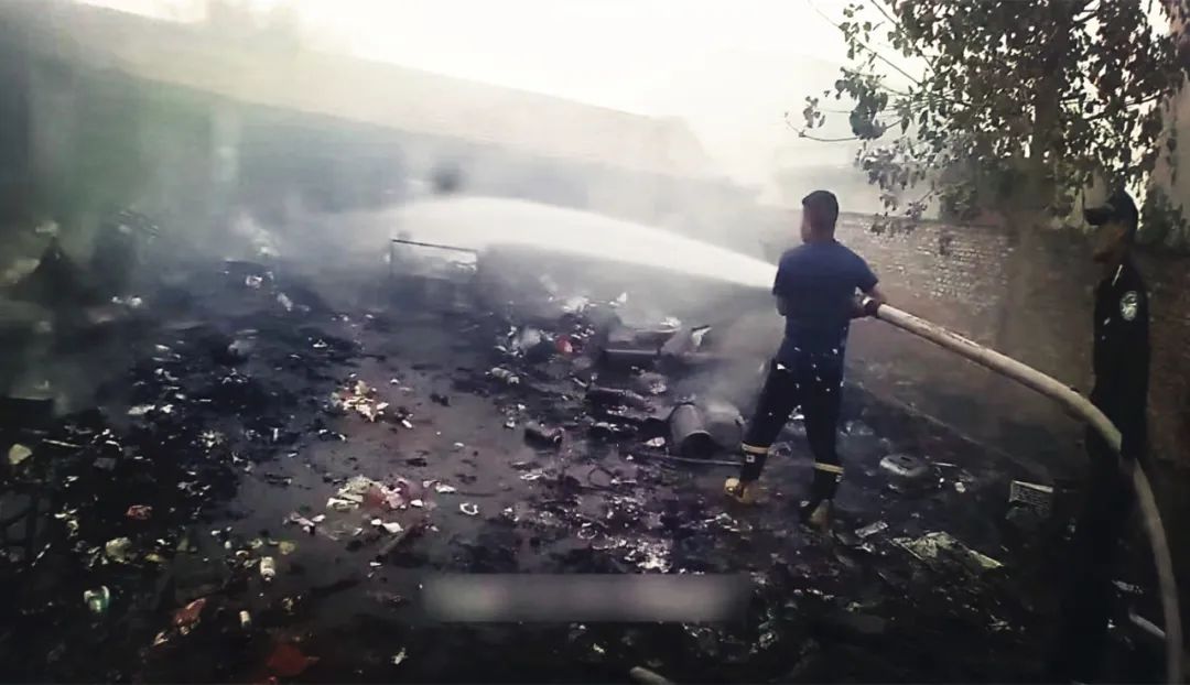民警在紧张灭火时