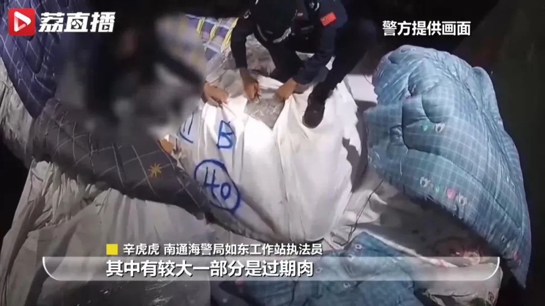 “查获的冻品,都是未经过检验检疫的,其中有较大一部分是过期肉,这些肉冰冻了很长时间,经过化学药剂加工再销往市场,质量和卫生是完全没有保证的。”南通海警局如东工作站执法员辛虎虎说。