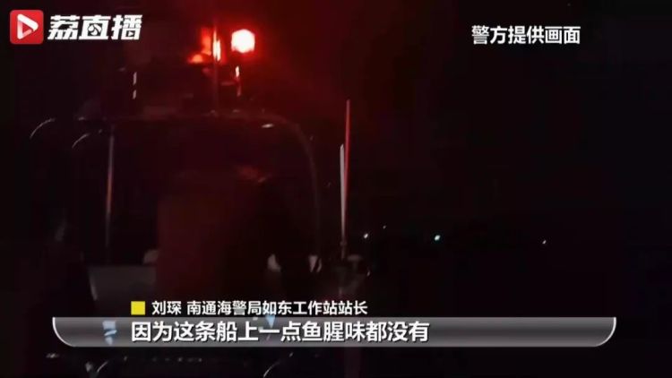 “船上人员说他们舱内装的都是些渔获物,但是这条船却又跟我们平常检查的不一样,因为这条船上一点鱼腥味都没有 ,这又加深了我们的怀疑。”南通海警局如东工作站站长刘琛说。