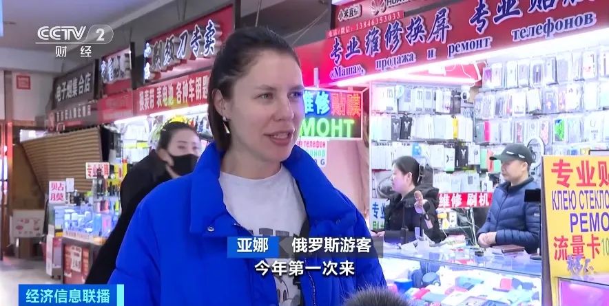 俄罗斯游客 亚娜: 今年第一次来,我们到这里吃东西、逛街、买手机,现在海关通关速度很快。