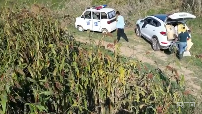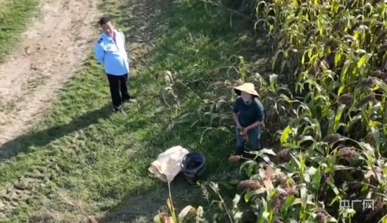 据网络视频显示,一名身穿执法人员制服的男子站在一片成熟的高粱地边,一名女子正在收高粱,两人发现有无人机后,立即停止行动;现场当时停着两辆车,一辆车身印有“巡逻”字样的车子先离开 ,随后,制服男子上了另一辆车,该车辆后备厢装着多个袋子 。