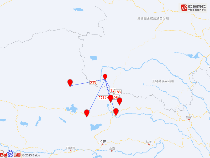 周边县城: 震中距西藏安多县150公里、距西藏聂荣县188公里、距西藏双湖县233公里、距西藏??色尼区244公里、距西藏班戈县271公里,距西藏那曲市243公里,距拉萨市437公里。
