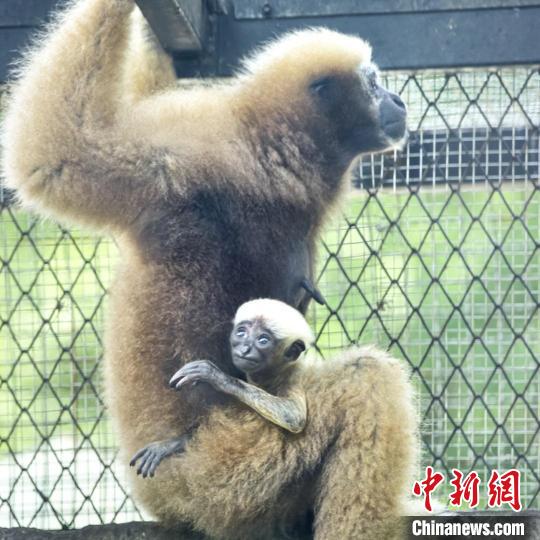 据了解,长臂猿雌雄异色,在成长过程中会经历两到三次的毛色变化。“猿胜”目前性别未知,待成长至7岁至9岁性成熟期时,若为雌性就会在一两个月间转变为灰黄色,若为雄性则不会再变化。