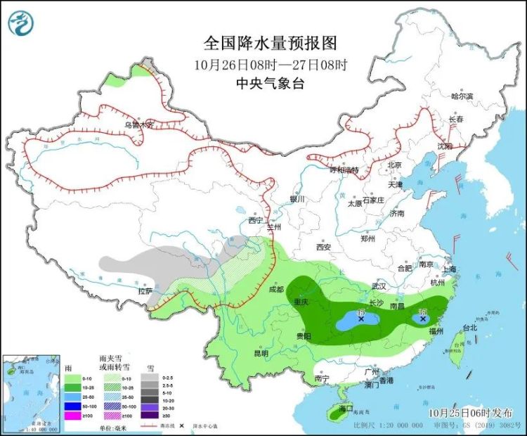 图1 全国降水量预报图(10月25日08时-26日08时)