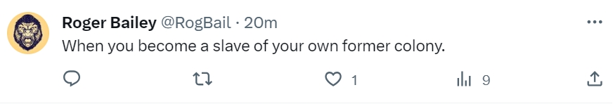 还有网友似乎发现英美政府在本轮巴以冲突态度上的相近:“他被那个美国老头收买了。”“当你成为自己前殖民地的奴隶。”↓