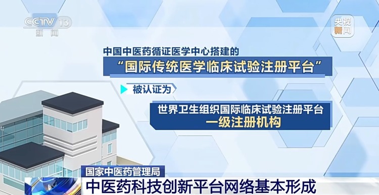数据显示,目前中医药领域有全国重点实验室7个,国家临床医学研究中心2个、国家工程研究中心5个、国家中医药传承创新中心46个,并持续深化40家国家中医临床研究基地、136家国家中医药管理局重点研究室建设。中国中医药循证医学中心搭建的“国际传统医学临床试验注册平台”被认证为世界卫生组织国际临床试验注册平台一级注册机构。