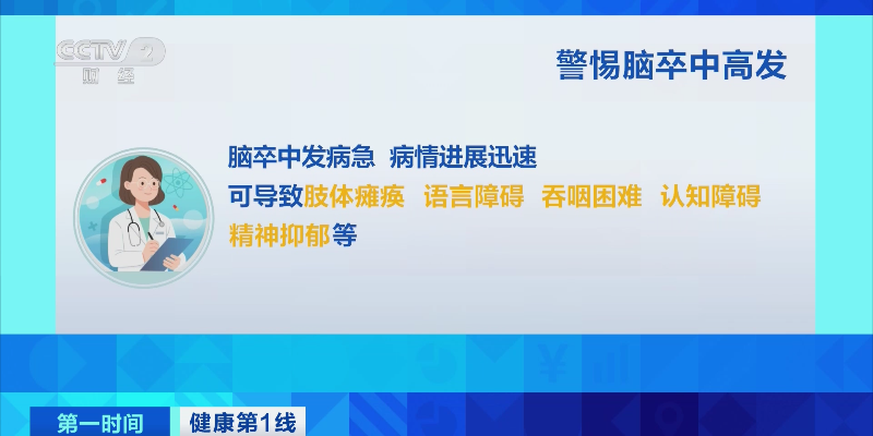 专家介绍,发生脑卒中前,身体会发出一些预警信号,如语言障碍、突发头晕呕吐、单侧肢体出现功能障碍、过度嗜睡等 。脑卒中发病急、病情进展迅速,可导致肢体瘫痪、语言障碍、吞咽困难、认知障碍、精神抑郁等。专家提示,秋冬季节,天气寒冷,室内外温差大,警惕脑卒中高发。此时,血管弹性较差的老年人,更容易发生脑卒中。脑卒中易复发 需遵医嘱坚持长期服药