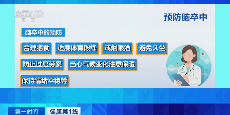 专家表示,脑卒中的预防要合理膳食、适度体育锻炼、戒烟限酒、避免久坐、防止过度劳累、当心气候变化注意保暖、保持情绪平稳等。此外,要定期进行脑卒中危险因素筛查,控制好血压、血脂、血糖等,做到早预防、早发现、早诊断、早治疗,就可以有效防治脑卒中。