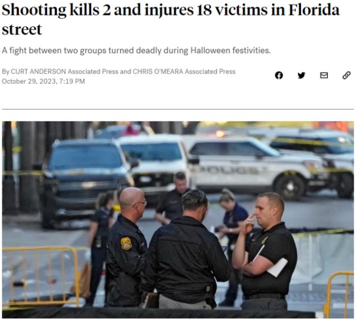 中新网10月30日电 据美国广播公司(ABC)报道,当地时间29日,美国佛罗里达州坦帕市万圣节庆祝活动期间发生大规模枪击,造成2人死亡,18人受伤。