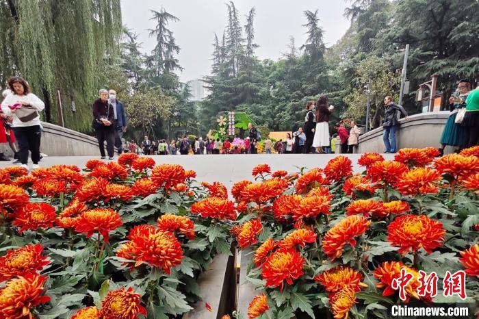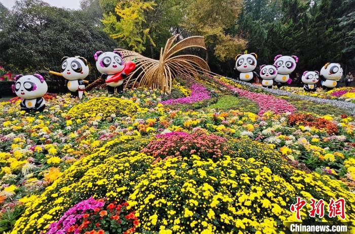 10月31日,四川成都人民公园正在举行的第61届菊花展热闹非凡,陆续盛开的10万余盆菊花吸引了不少民众和游客前往观赏或拍照。本次菊花展布置了“菊香秋韵醉蓉城”“国宝游翠竹”“凤凰来仪”“雄关万里”“绿水青山”“采菊东篱”6组菊花组景,展览将持续至11月19日。